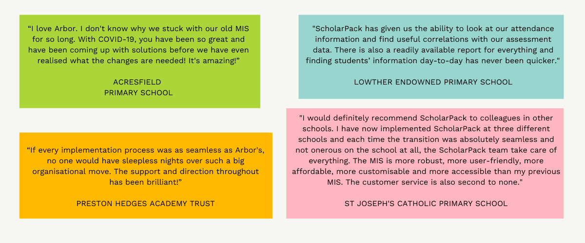 Once you've signed your contract, we'll start helping you get ready to move to Arbor or ScholarPack! We're committing to help you move by September 2022 if you sign by 17th June, and you'll have more choice over the date the sooner you sign.